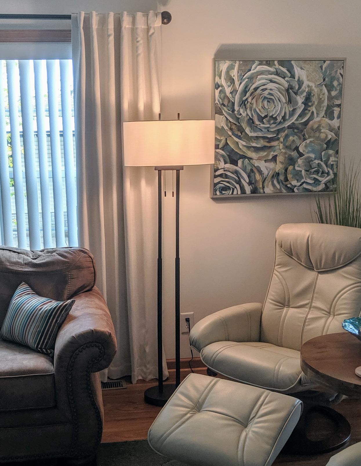 Our contemporary floor lamp boasts clean lines and a sleek silhouette, perfect for adding a touch of elegance and brightness to your living room or office.